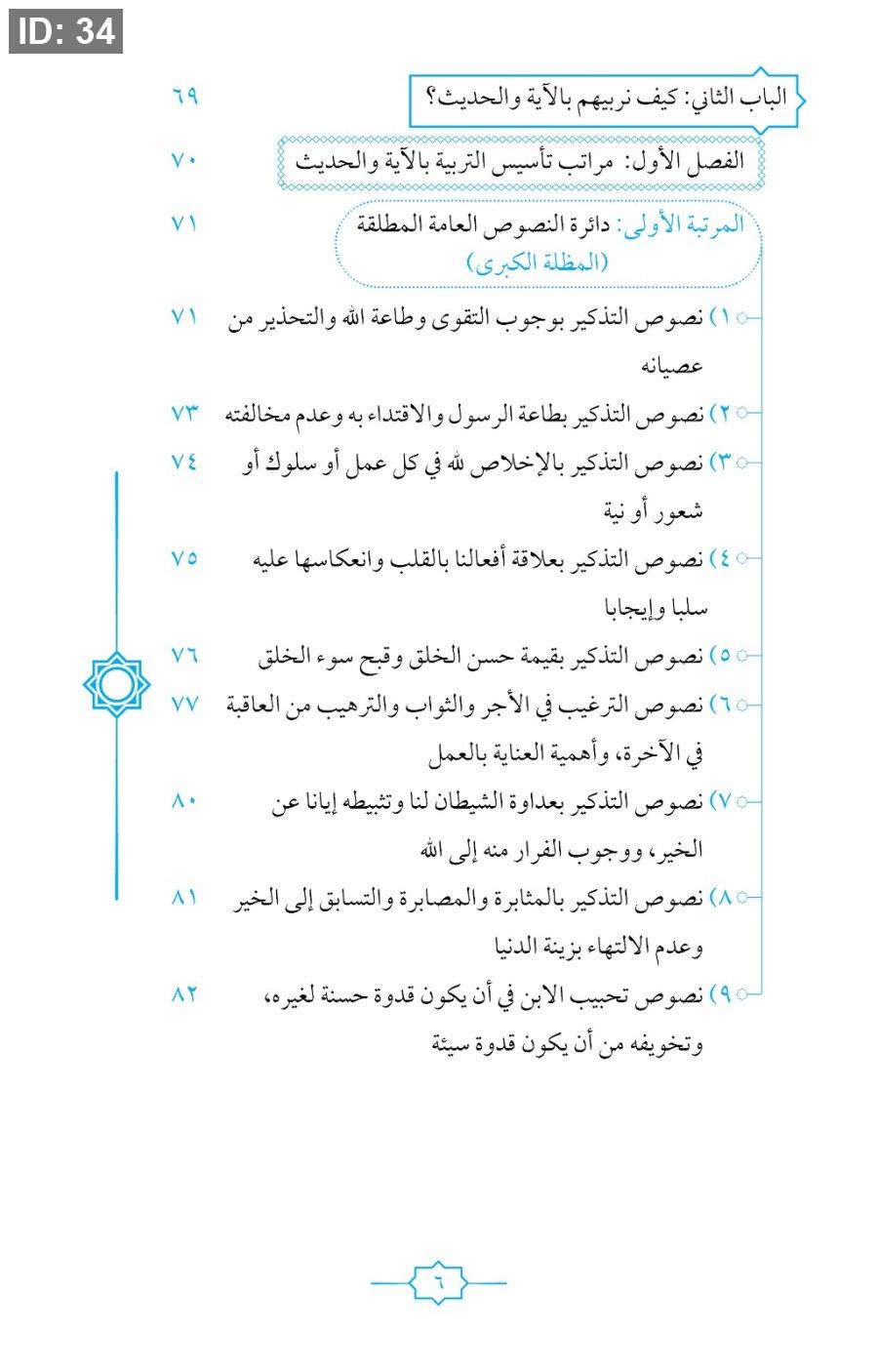 يعرض الكتاب مواقف تربوية مختلفة ويقترح لكل موقف آية أو حديث مناسب يساعد الوالدين على التوجيه والتربية بطريقة هادئة ومؤثرة. كما يركز على غرس القيم الإسلامية مثل الصدق، والأمانة، والاحترام بأسلوب بسيط قريب من فهم الطفل.