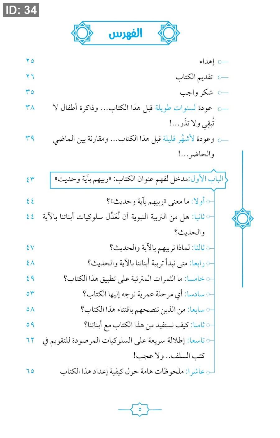 كتاب "ربّيهم بآية وحديث" هو كتاب تربوي يقدّم أسلوبًا عمليًا لتربية الأبناء من خلال ربط المواقف اليومية بآيات من القرآن الكريم وأحاديث نبوية. يهدف إلى جعل النصوص الشرعية جزءًا من حياة الطفل وسلوكه، وليس مجرد معلومات تُحفظ فقط.