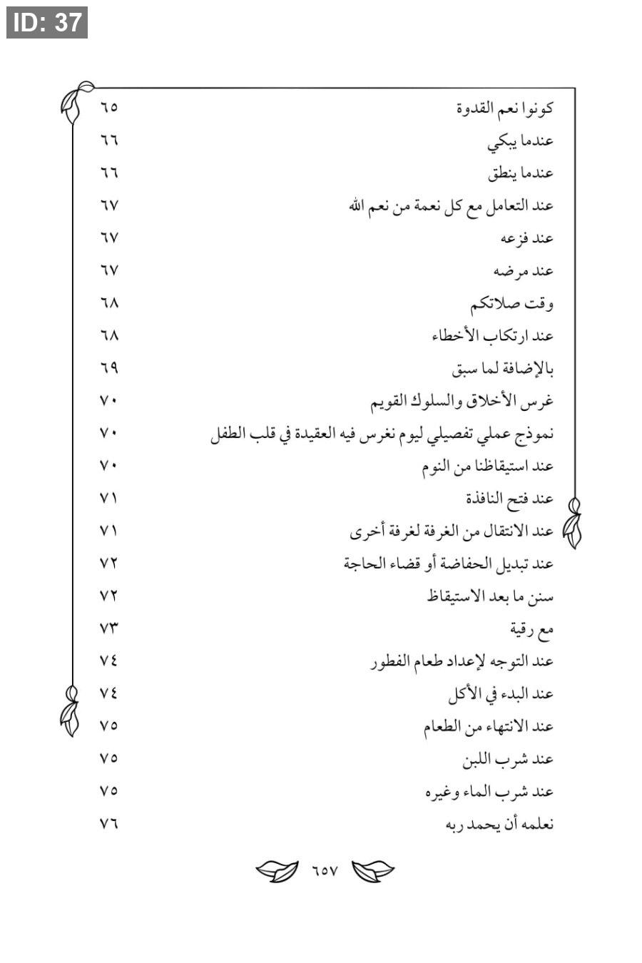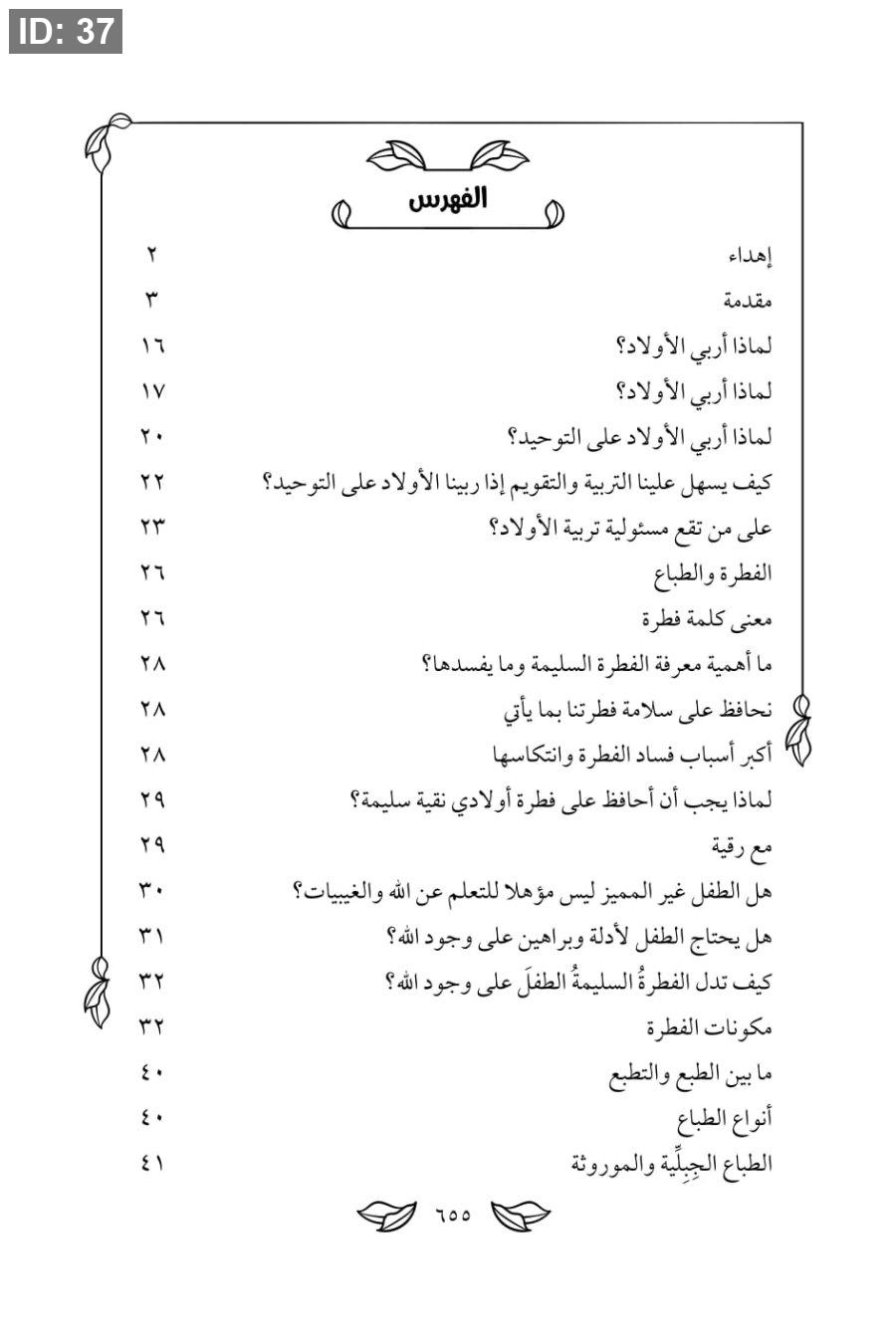 يشرح الكتاب أهمية السنوات الأولى في تشكيل شخصية الطفل، ويقدّم نصائح عملية للأهل حول كيفية غرس الإيمان، والصدق، والاحترام، والعادات الحسنة في حياة الأبناء. كما يركّز على أساليب التربية الإيجابية القائمة على الحب والتوجيه بدل القسوة والعقاب.