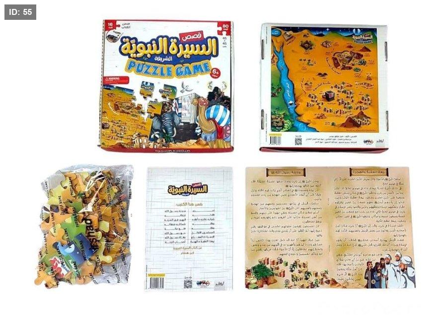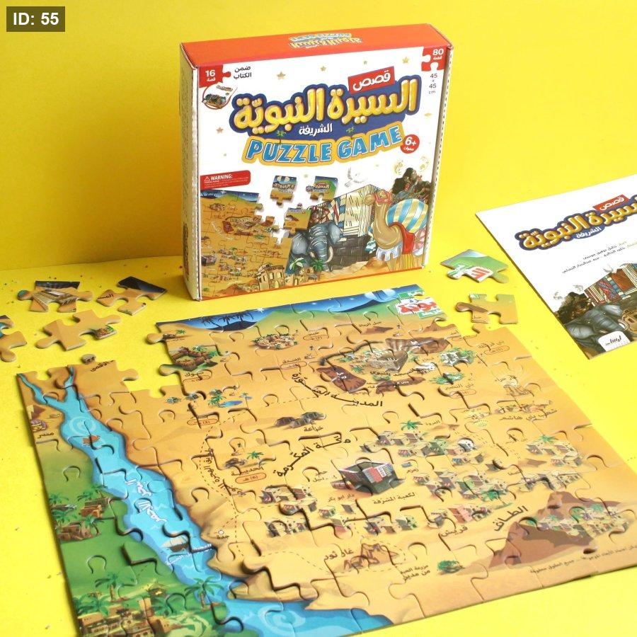 بازل يتكوّن من مجموعة قطع يتم تركيبها لتشكّل مشاهد من أحداث السيرة النبوية، مثل ولادة النبي ﷺ، الهجرة، وبناء المسجد. يساعد الطفل على الربط بين القصة والصورة، مما يعزز الفهم والتذكر بطريقة بسيطة وجذابة.